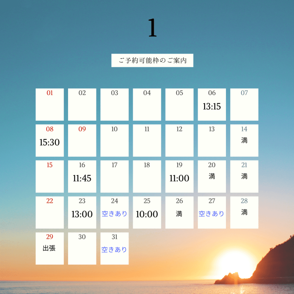 *🈵の日がご希望の場合は、『○月○日何時(ご希望の日時や曜日)キャンセル待ち』とLINEにメッセージください。