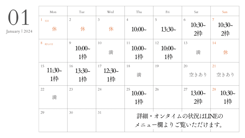 1月のご予約状況です。