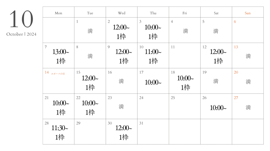 (こちらは9月27日現在の状況です。オンタイムでの予約状況は公式LINEの「新たに予約する」ボタンからご確認いただけます。)
