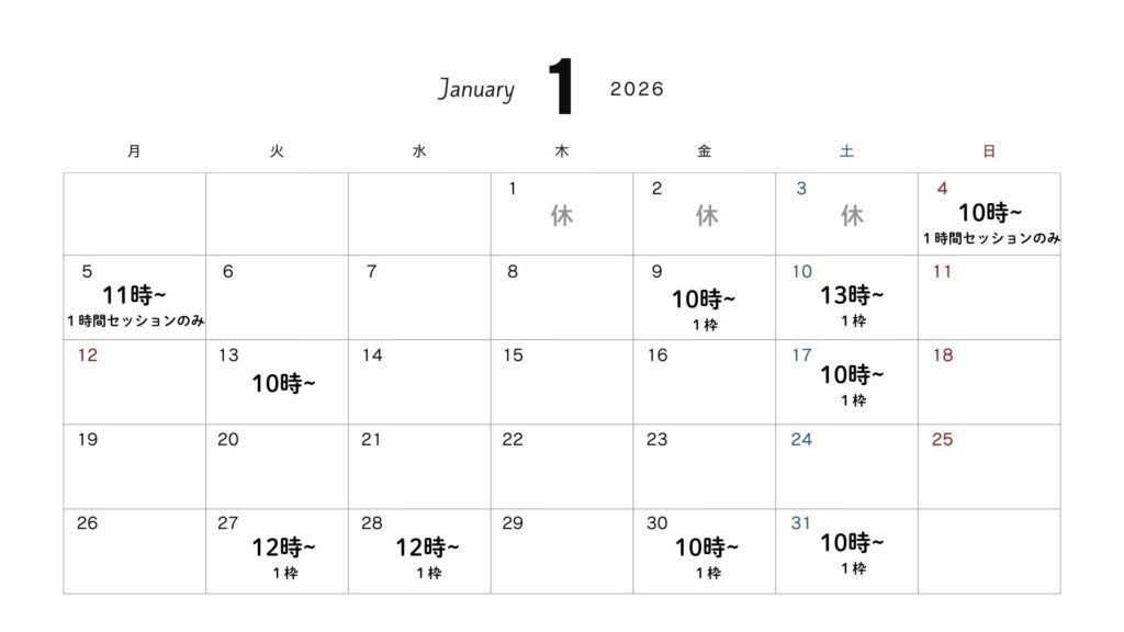 (こちらは12月31日現在の状況です。オンタイムでの予約状況は公式LINEの「新たに予約する」ボタンからご確認いただけます。)